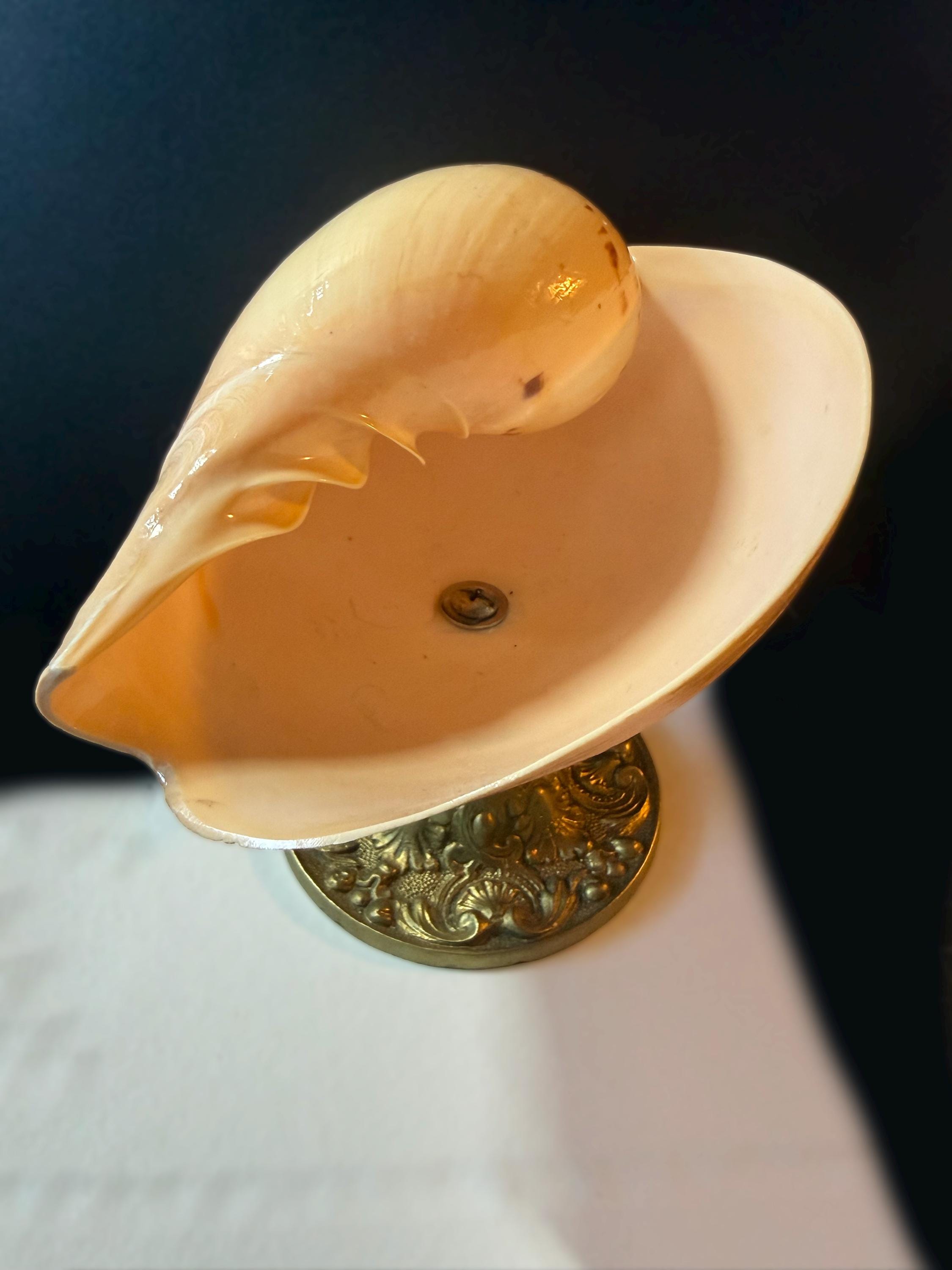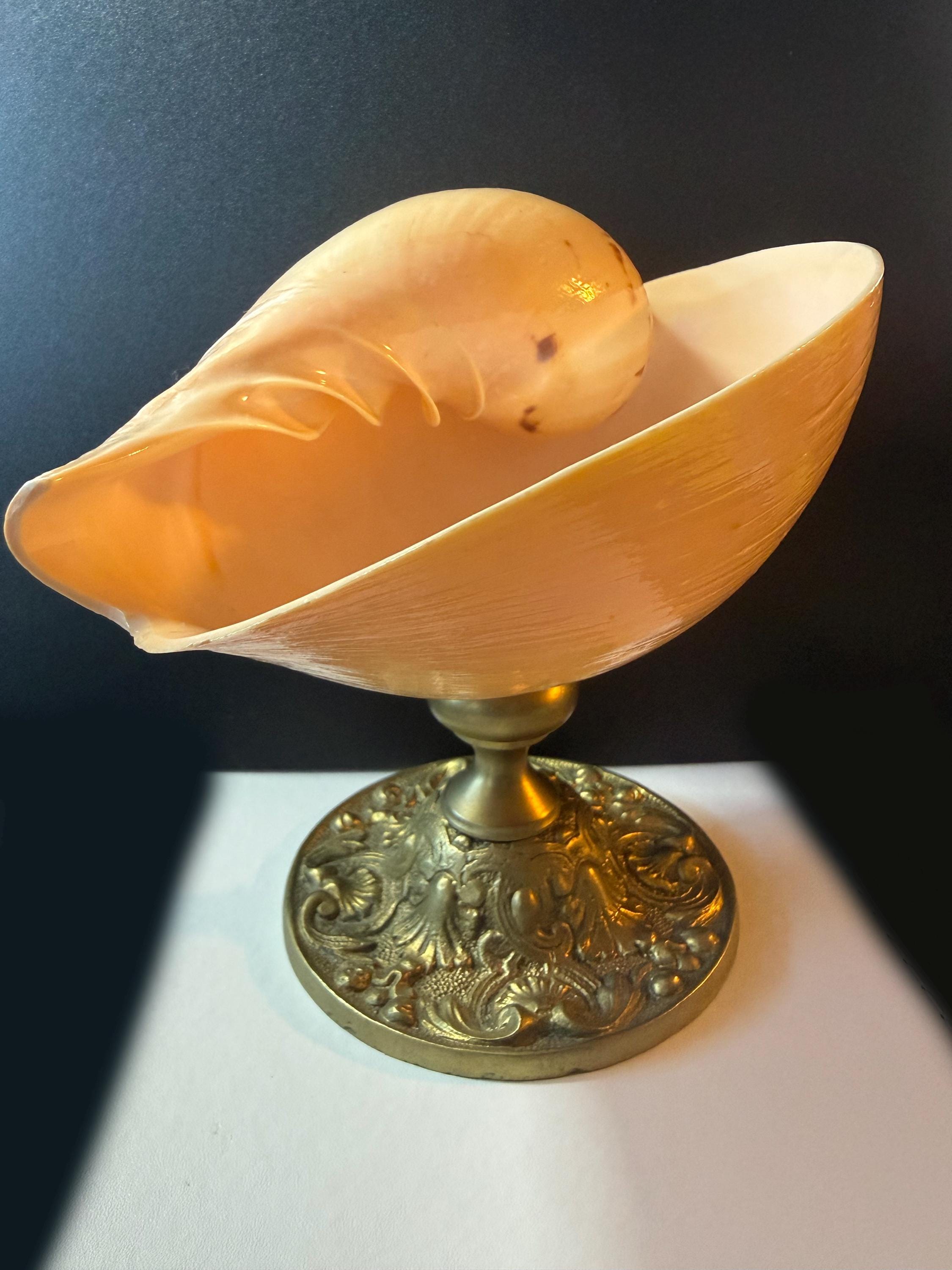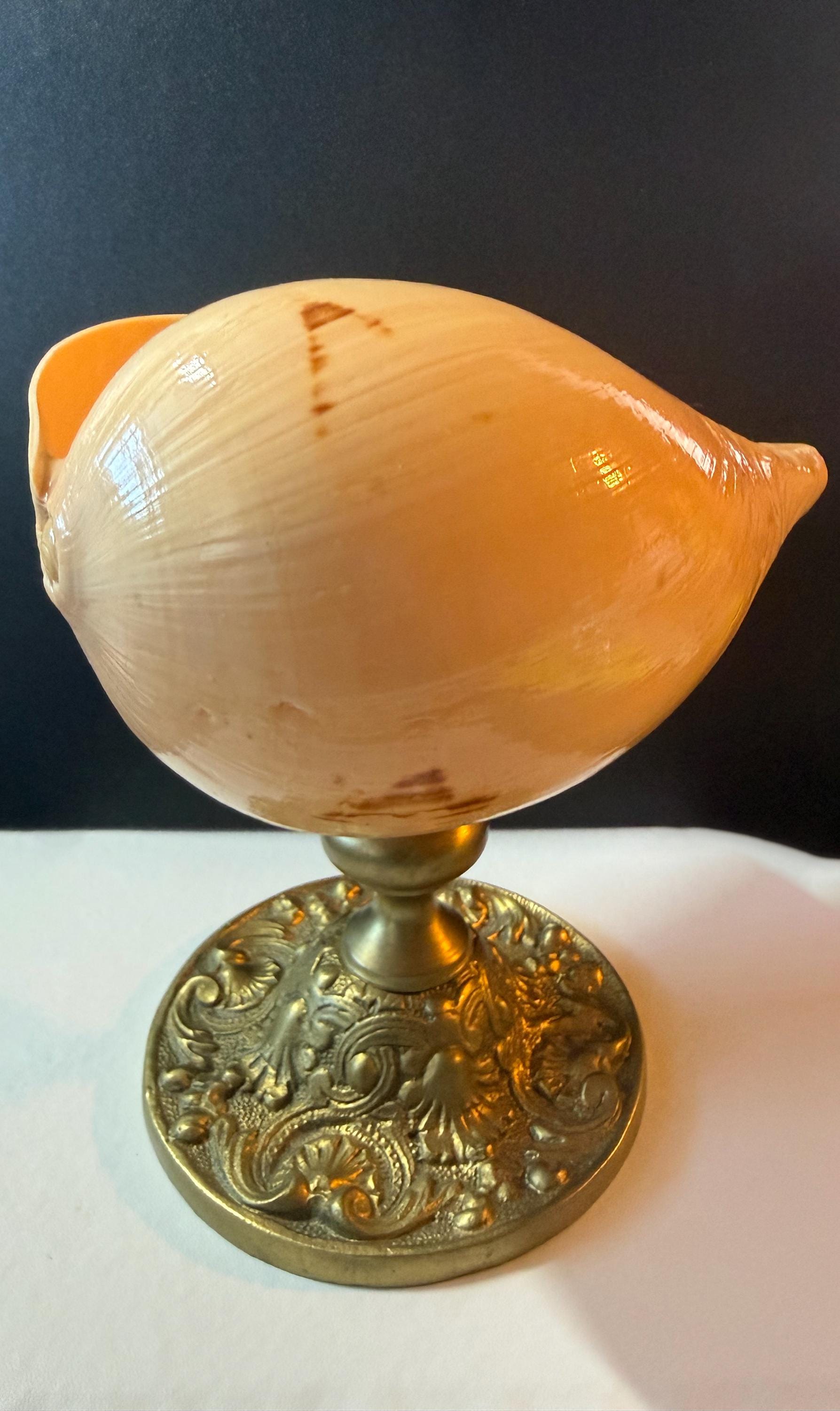 Vintage Shell & Bronze Aspersorium/Situla (vessel to hold annointing water, herbs or candles) Pristine condition. Purchased at auction with other Situla. This is from the USA, but that is all the information I have. Real shell and bronze base.