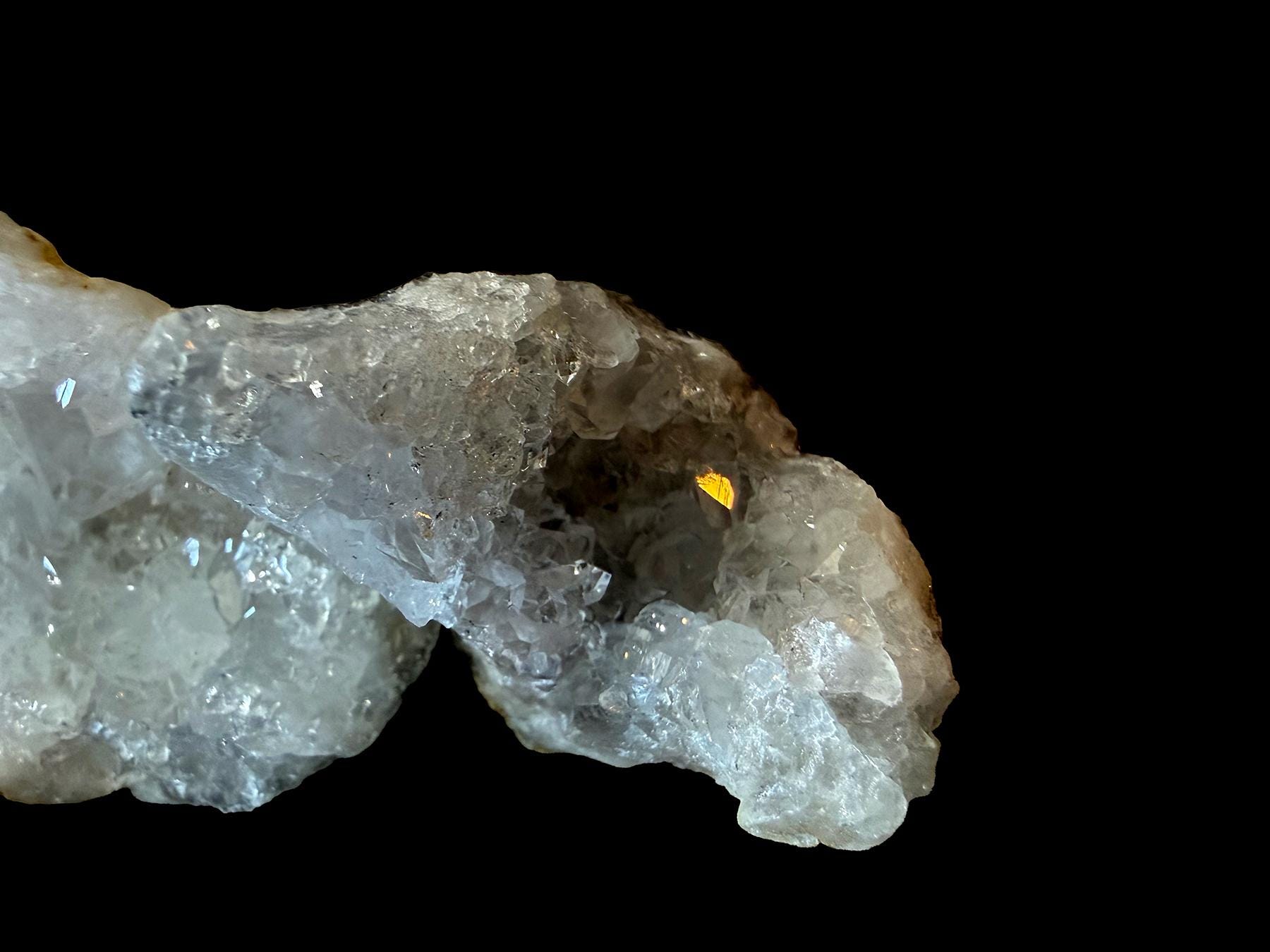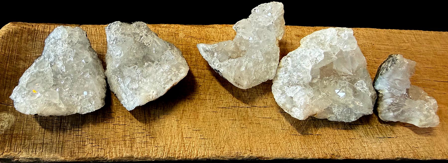 A very special collection of quartz..with some great terminated crystals within. This is from the Herkimer area in upper NY. pairs of this geode fit together. Great rainbows too. 5 total pieces in this collection and they all are about 1.5 - 2. inches